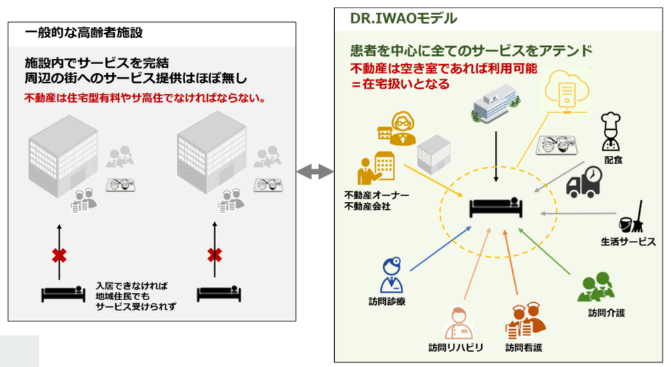 退院後の行き先が施設だけではない。IWAOモデルが提案するのは、