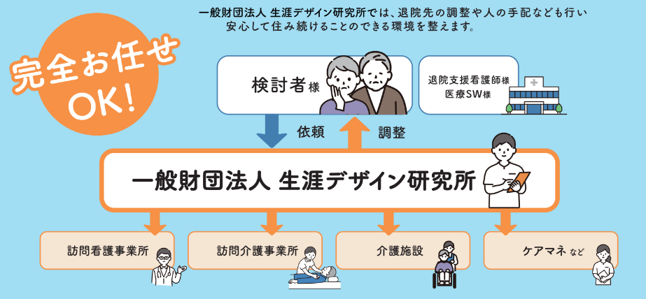 ご本人様に合った在宅と施設のご提案が可能